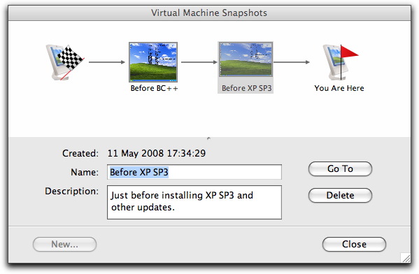 The restore of this snapshot took less than a minute. After that, I did the other two snapshots, but I’ll spare you the details. It all took another five minutes or so of time. After that, I rebooted the XP and started up Visual Studio 2008. Got one screen where it asked me to recover three source files, I clicked “yes”, then everything compiled and worked fine. Seems I lost about two hours of work from after the backup.