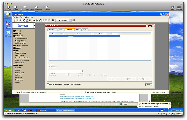 So, I start up the XP Pro instance I use for Retrospect (and nothing else). This one runs under VMware Fusion, for no particular reason.