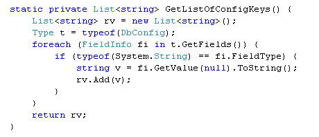 This falls in the category “neat tricks” and definitely under “DRY” (Don’t Repeat Yourself). When you have a list of constants that you need to save or retrieve, typically settings, you easily get into a situation where you have say 20 constant strings defining the names of your constants, and then a block of code going through the same 20 variables to retrieve or save them. When you add a constant, you’ve got at least three places to add code and then I’m not even counting the places where you actually use the settings value.