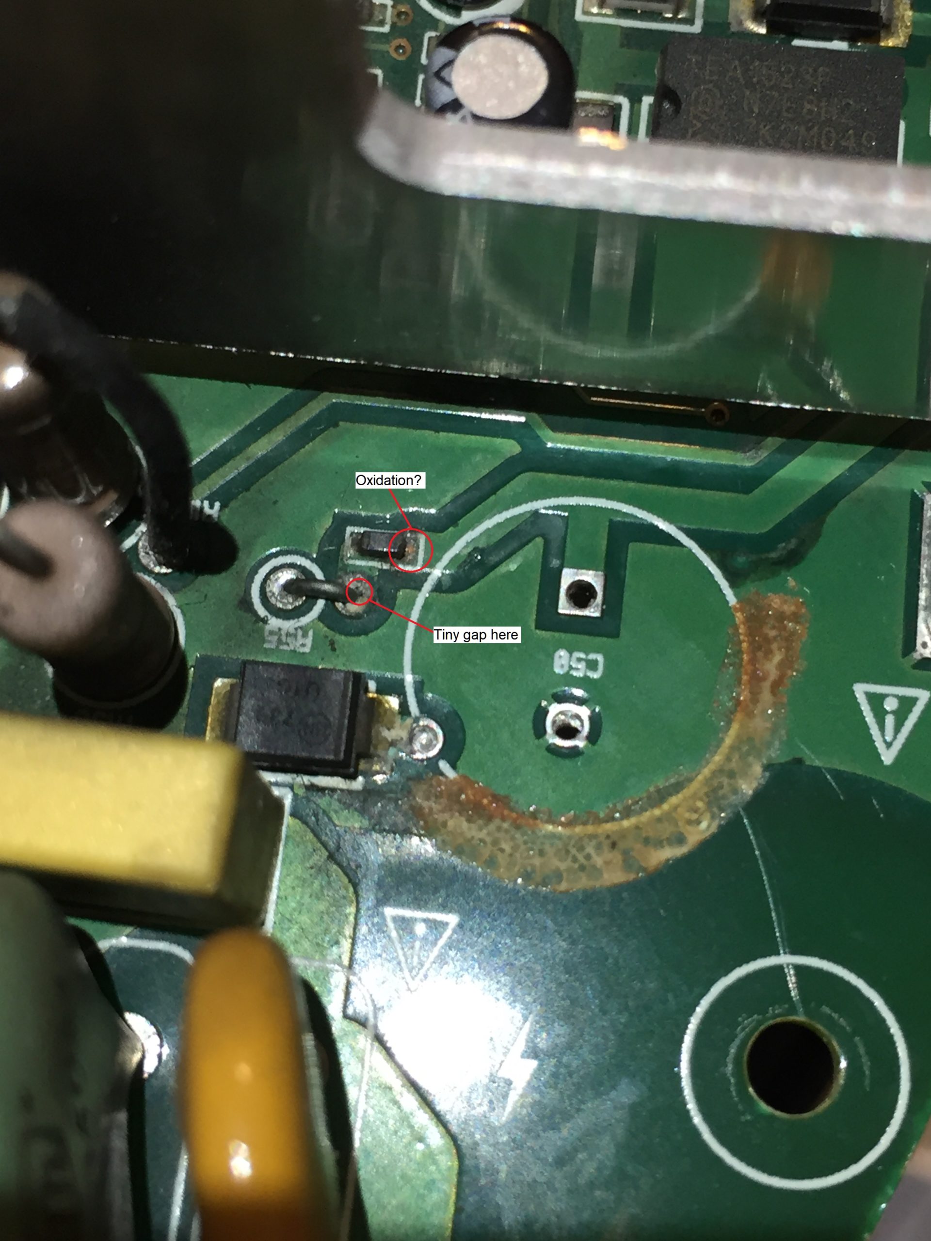 (In the foreground of that last picture, you’ll see a transistor with a horrible mess around the legs. That’s normal! Razer put in a series resistor there as some last minute change, then added some gunk that turns brown. Looks like shit, but I couldn’t find any fault there.)