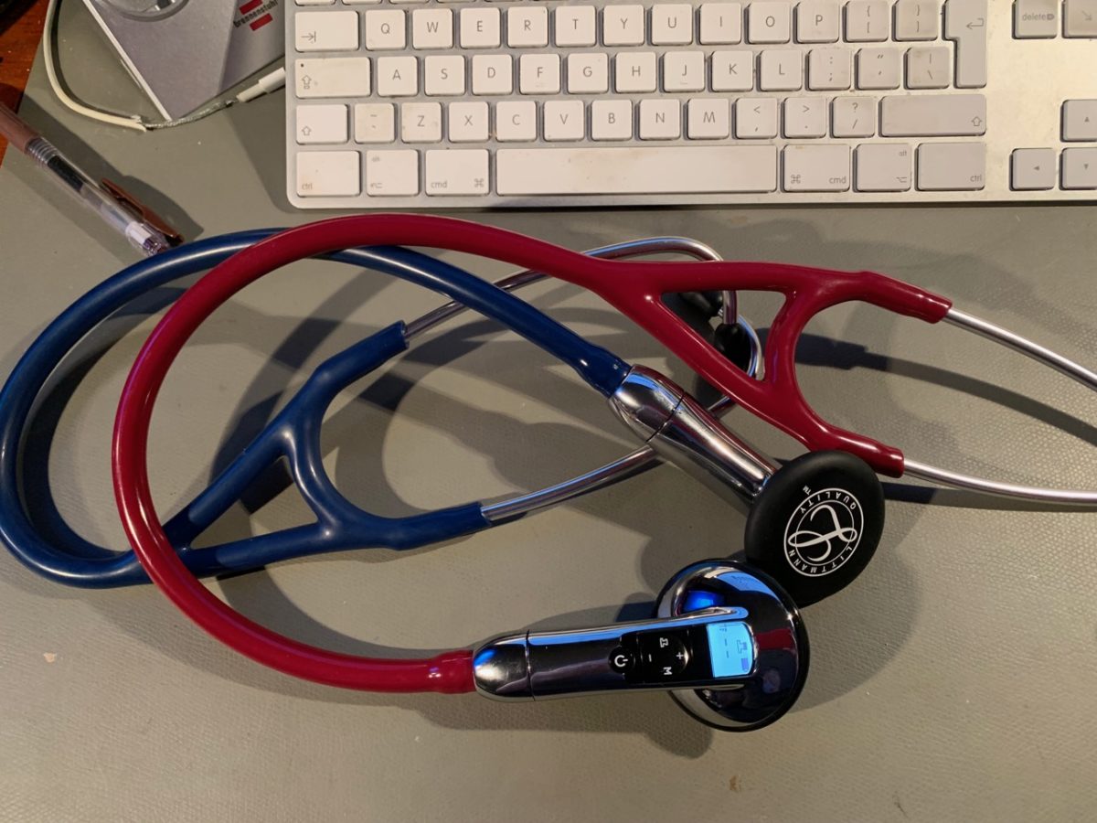 A couple of years ago I bought a Littmann 3200 electronic stethoscope. Love the thing. Fantastic (and adjustable) sound and recording capability and Bluetooth connection to upload those sounds to a companion app.